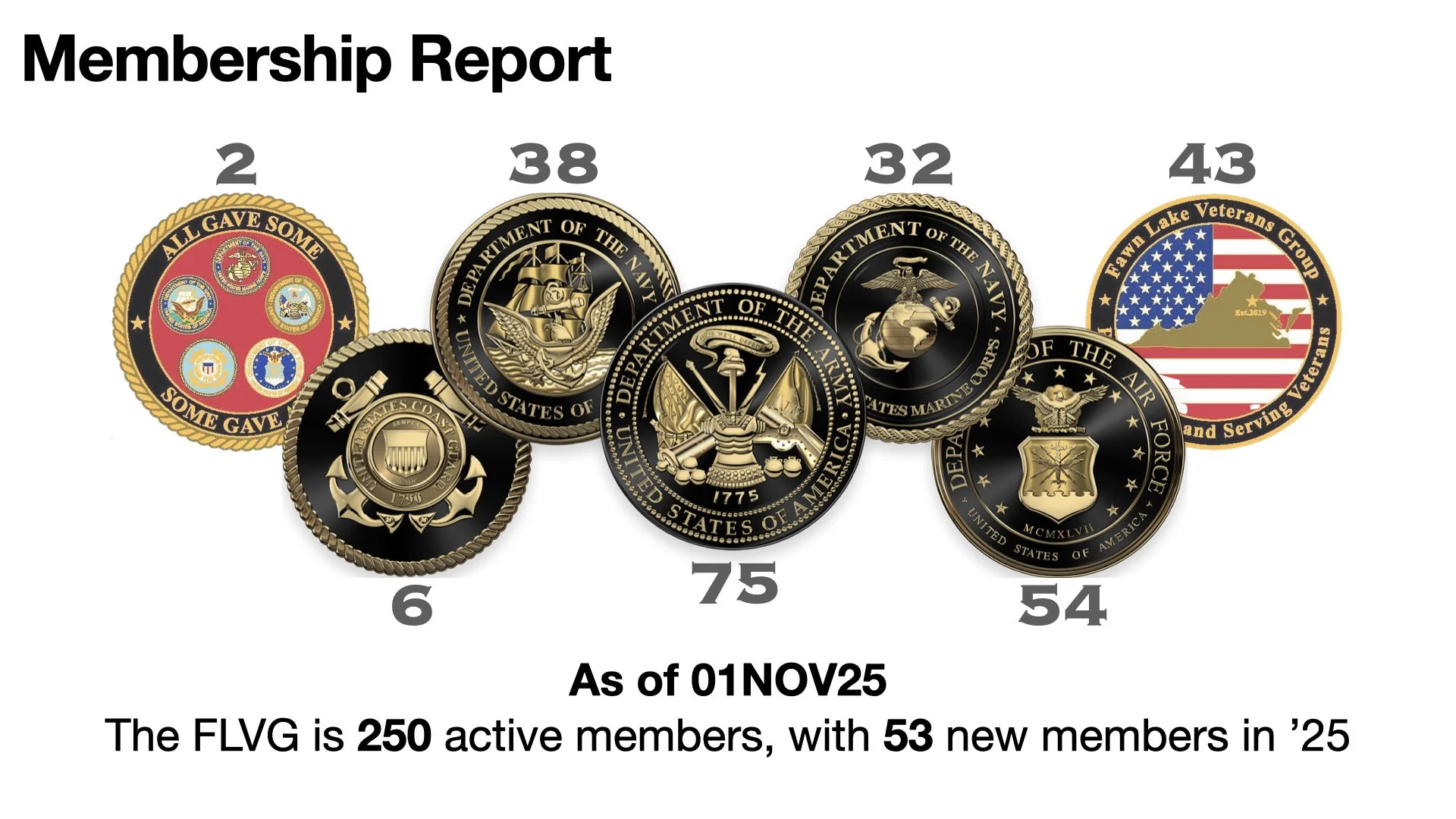 There is a one-time $50 initiation fee to join. New members receive a FLVG embroidered ball cap, polo shirt, and a challenge coin.
